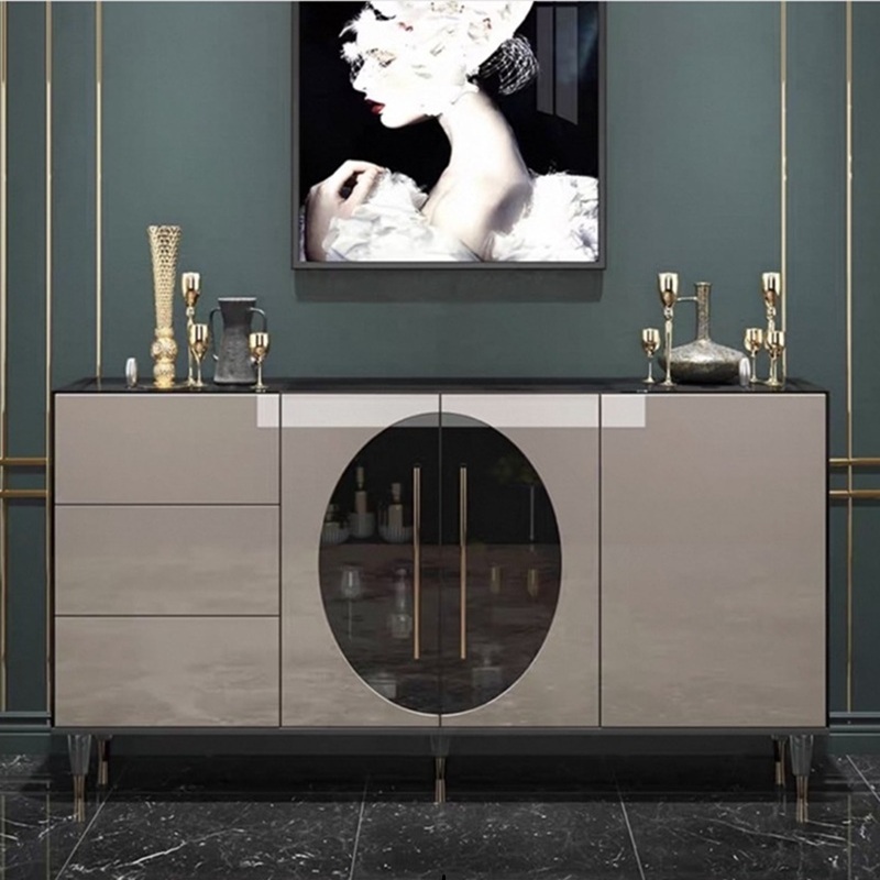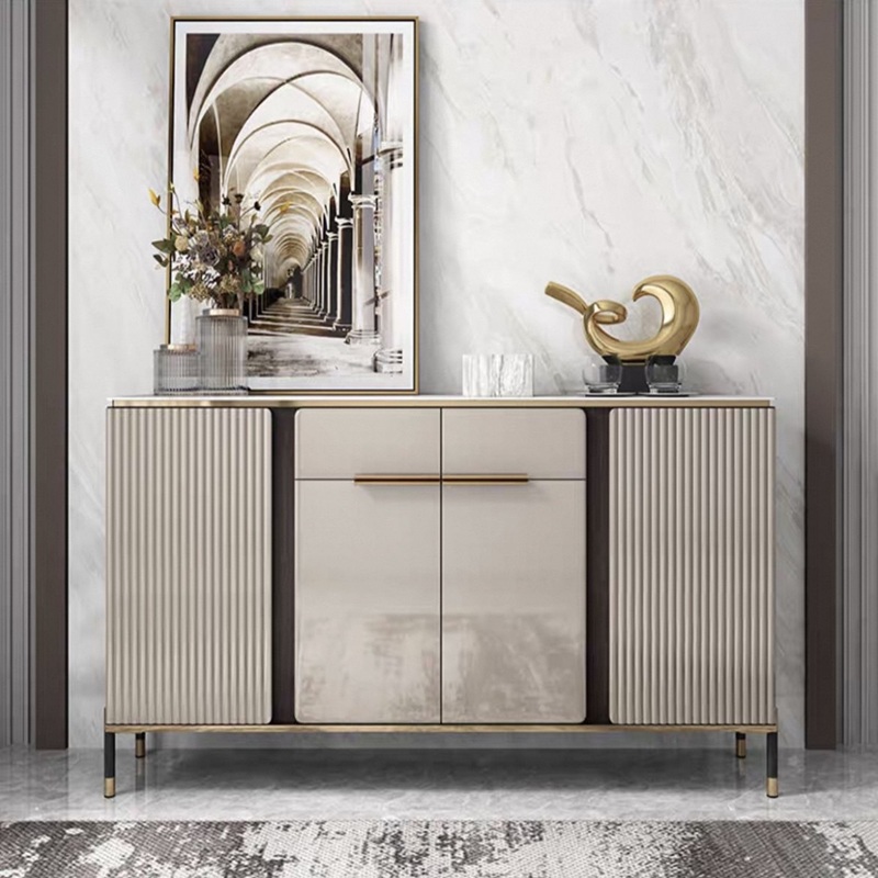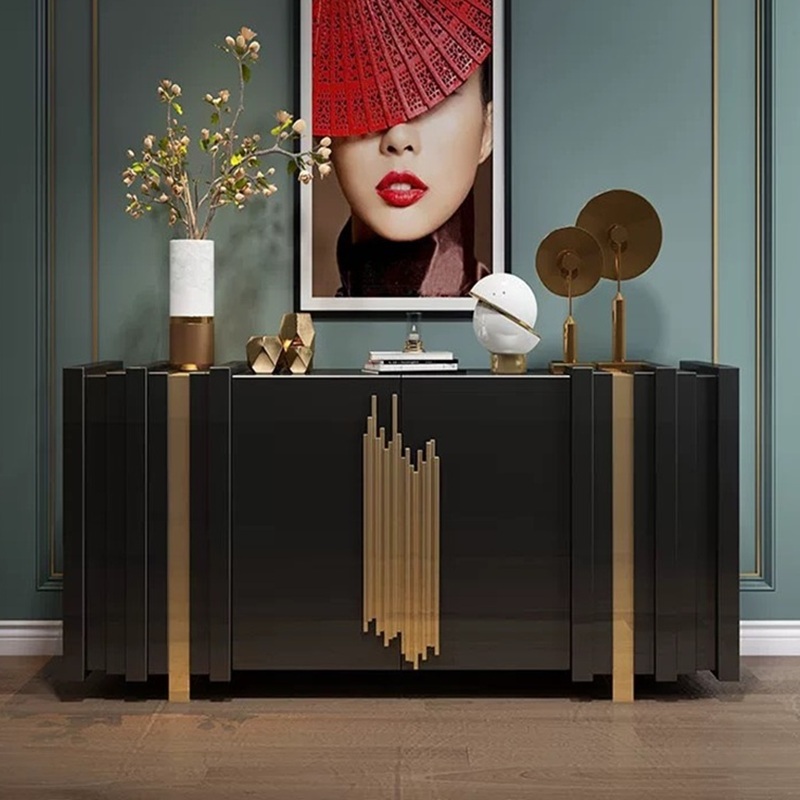 Console cabinet, golden parts, stainless steel, top with marble many size