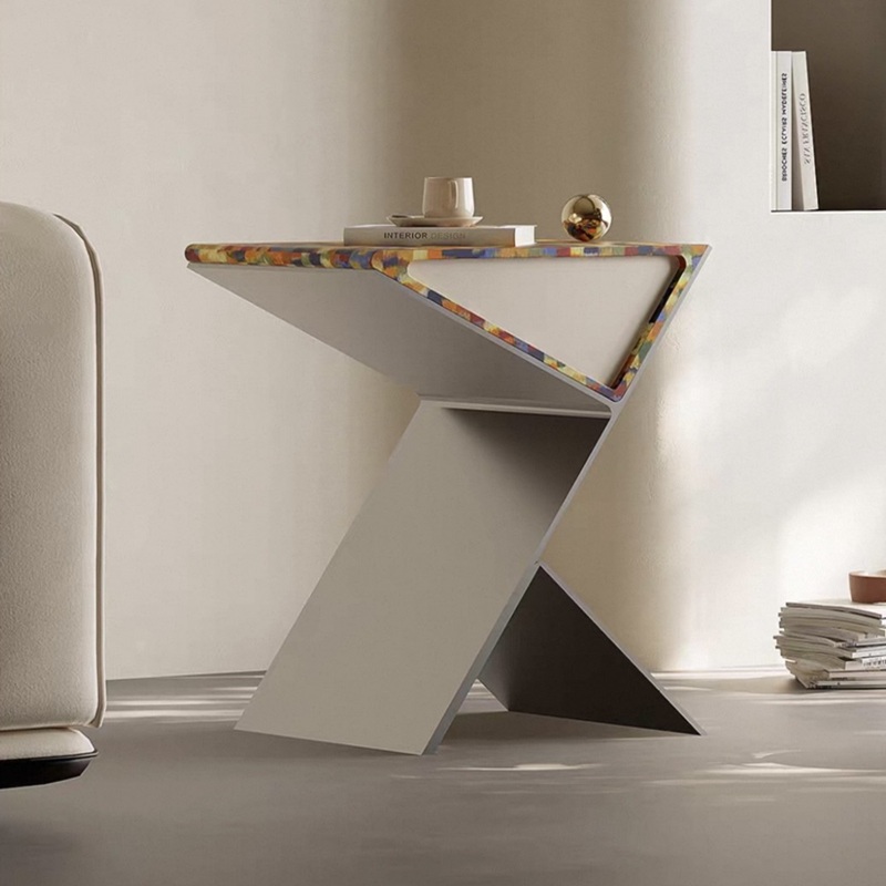 Minimalist Cream Side Table – Modern Designer Accent Q0046