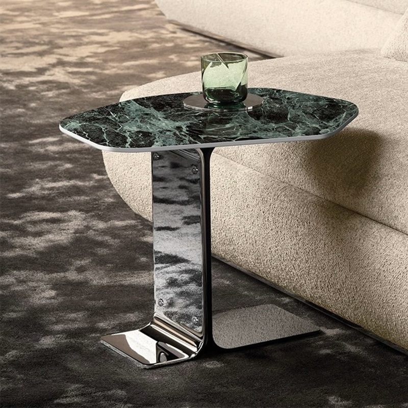 Side table, glass top, stainless steel legs price 9,990 baht Q0073