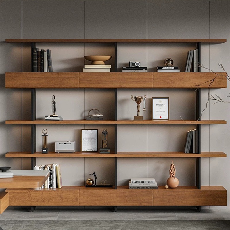 Modern Solid Wood Display Shelf with Office Partition Cabinet SS0009