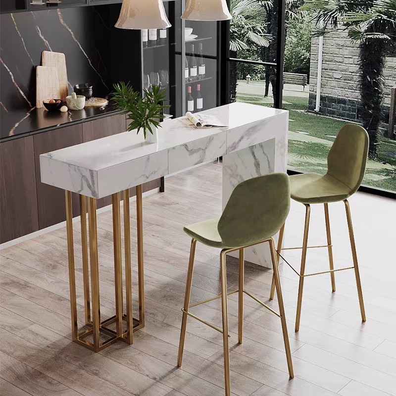 Italian-Style Imported Wooden Bar Table with Marble Top ZZ0001